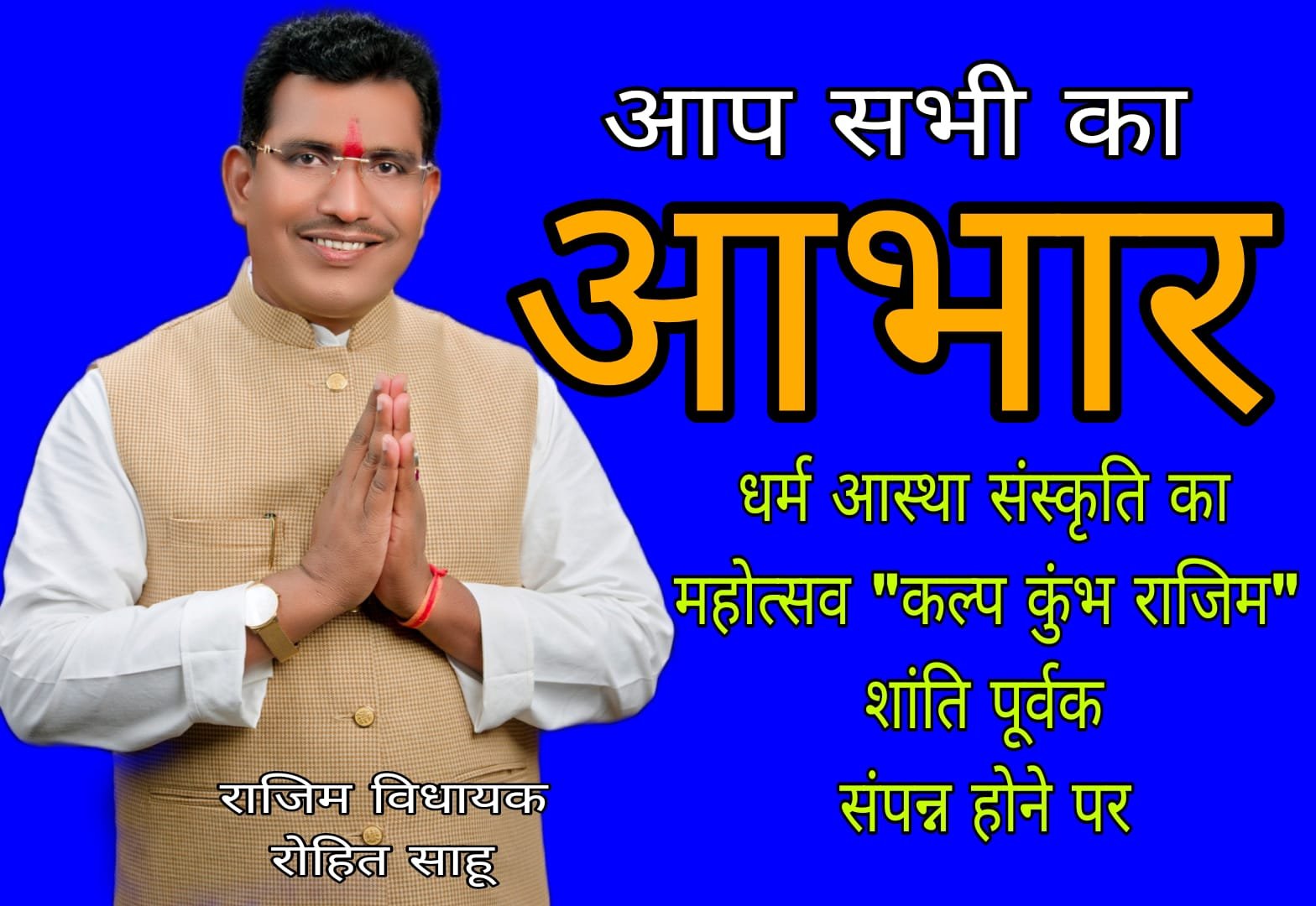 kalchakranews24 कुंभकल्प मेला शांतिपूर्वक संपन्न, विधायक रोहित साहू ने जताया आभार