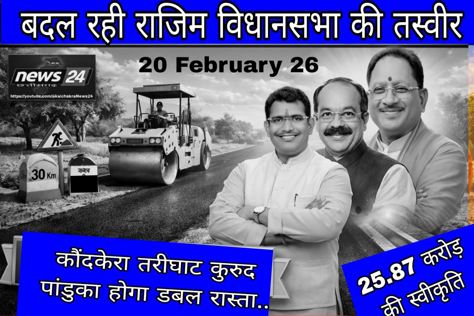 कौन्दकेरा-तरीघाट-कुरूद-पाण्डुका टू लेन मार्ग निर्माण हेतु 25.87 करोड़ रुपए स्वीकृत रानुप्रिया(रायपुर):- विधायक रोहित साहू के...