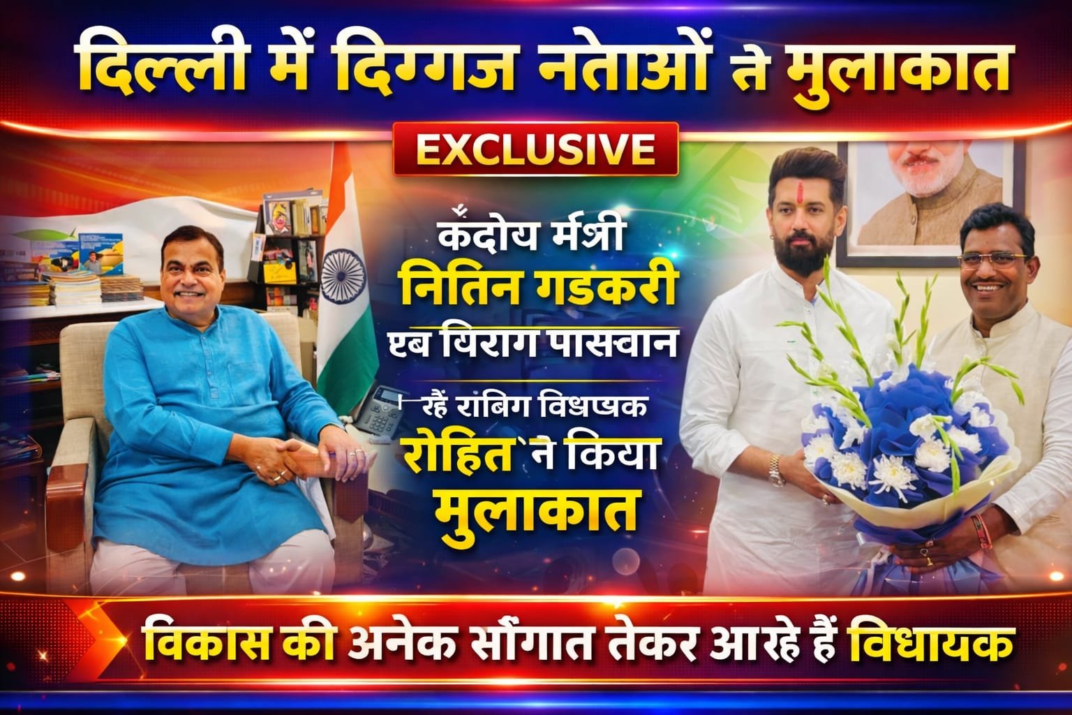 kalchakranews24 विधायक रोहित साहू ने केंद्रीय मंत्री नितिन गडकरी एवं चिराग पासवान से की मुलाकात, राजिम के विकास को मिलेगी नई गति