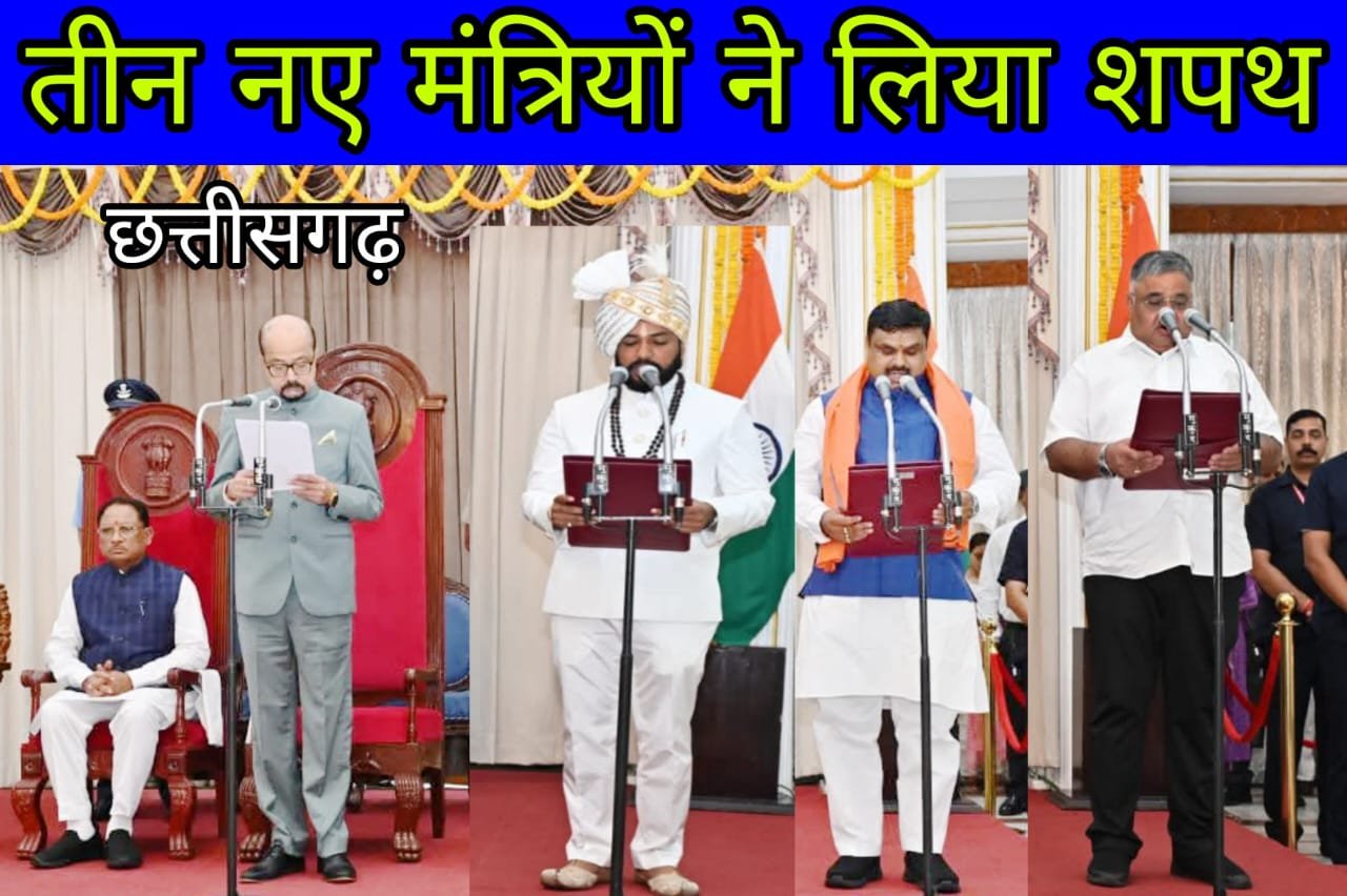 महामहिम राज्यपाल रमेन डेका ने राजभवन के छत्तीसगढ़ मण्डपम् में ३ नए कैबिनेट मंत्री को...