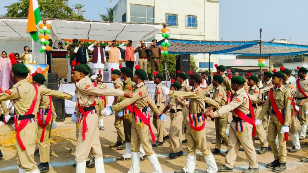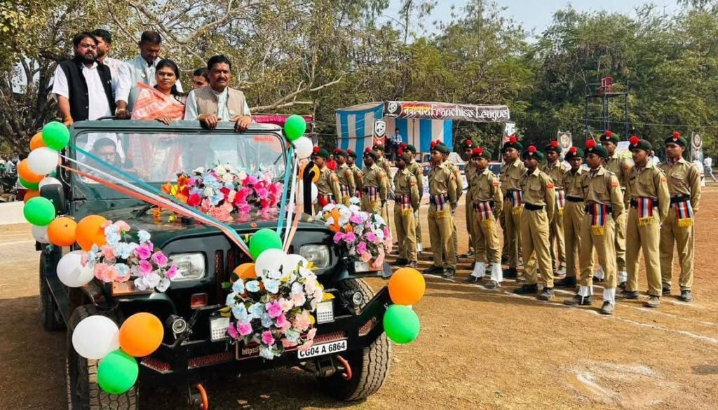 पुराने मेला मैदान में आयोजित कार्यक्रम के दौरान अनुशासन और राष्ट्रभक्ति का अद्भुत संगम देखने को मिला। यहाँ विधायक रोहित साहू ने राजीव लोचन स्नातकोत्तर महाविद्यालय राजिम तथा सेजेस राजिम के एनसीसी कैडेट्स की टुकड़ियों द्वारा प्रस्तुत भव्य परेड का निरीक्षण किया। कैडेट्स के सधे हुए कदमों और जय हिंद के उद्घोष के बीच विधायक ने परेड की सलामी ली।