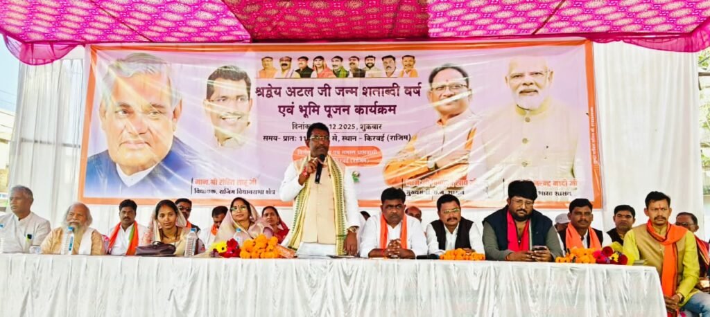 सर्वप्रथम अटल बिहारी वाजपेयी के छायाचित्र पर पूजा अर्चना कर कार्यक्रम की शुरूआत हुई। इस गरिमामय समारोह में अटल शताब्दी वर्ष को यादगार बनाते हुए जनप्रतिनिधियों ने गांव में विकास कार्य की नई सौगात दी। समारोह को संबोधित करते हुए विधायक रोहित साहू ने कहा कि भारतीय जनता पार्टी की सरकार “सबका साथ सबका विकास” के उद्देश्य से जमीनी स्तर पर विकास कार्यों की सौगात हर गांव में दे रही है। आज हमने जिस गौरवपथ का भूमिपूजन किया है वह इस गांव के प्रमुख धार्मिक स्थल मां पुजेरिन दाई धाम तक सीधे जोड़ने की पहल है। इस गौरवपथ के निर्माण होने से हमारी आराध्य देवी मां पुजेरिन दाई के प्रांगण तक पहुंच सरलता से होगी। इसके पूर्व में भी लाखों रुपए के विकास कार्य इस किरवई गांव में और पुजेरिन दाई के धाम में हमने करके दिखाया है। यह नया गौरवपथ आवागमन को सुगम बनाएगा और पुजेरिन दाई धाम तक पहुंचने में भक्तों को सुविधाएं उपलब्ध होंगी। अटल शताब्दी वर्ष के विषय पर प्रकाश डालते हुए विधायक रोहित साहू ने कहा कि कहा कि अटल जी हमारे छत्तीसगढ़ राज्य के निर्माता और हम सभी के सर्वमान्य नेता थे, वे विपक्ष का सम्मान करने वाले, आलोचना को स्वीकार करने वाले और संवाद के माध्यम से समाधान निकालने वाले नेता थे। उन्होंने कहा कि अटल जी का व्यक्तित्व यह सिखाता है कि सत्ता से बड़ा राष्ट्रहित और पद से बड़ा कर्तव्य होता है। भाजपा जिलाध्यक्ष अनिल चंद्राकर ने कहा कि अटल जी का जीवन सुशासन और विकास के प्रति समर्पित था। यह गौरवपथ उनके विजन को धरातल पर उतारने की दिशा में एक छोटा सा प्रयास है। श्रद्धेय अटल जी के बारे में ज्यादा कहना सूरज को रौशनी दिखाने के समान है।
