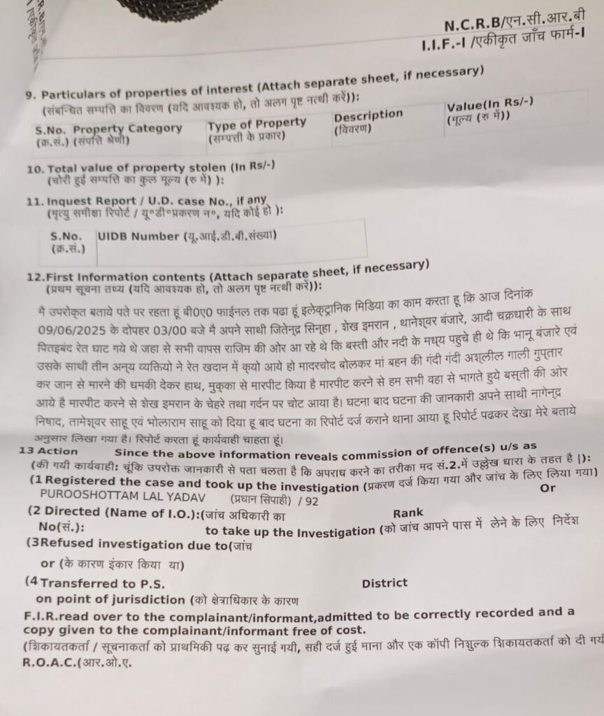 वहीं घटना को लेकर पत्रकारों में आक्रोश फैल गया, पत्रकारों पर हमले की जानकारी मिलते ही, राजिम, नवापारा, गरियाबंद, कोपरा, फिंगेश्वर, छुरा समेत कई जगह से पत्रकार राजिम थाना पहुंचे हुए थे… जहां पुलिस धारा २९६/११५ (२) /३५१ (३)/ ३ (५) के तहत FIR किया… फ़िलहाल तस्करों के गुर्गो की तलाश जारी हैं….