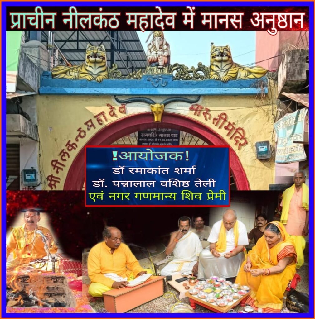 श्री नीलकंठ मंदिर बढाई पारा नवापारा में तीन दिवसीय मानस अनुष्ठान का आयोजन दिनांक 9 जून 10 जून एवं 11 जून 2025 में किया गया है। संसार को भवसागर कहा जाता है ,इसमें मोह बंधन में पड़कर अनेक जीव कई योनियों की जीवन शैली को अपनाकर उन सारे जीवों की योनियों के दुख को भोगता है, एक दुर्गुण सारे सद्गुण को नष्ट कर जीव को कलि काल के बड़े बंधन में बांधकर मुक्ति से वंचित करता है ,मुक्ति प्राप्ति के लिए भक्ति अनिवार्य है,भक्ति से ज्ञान वैराग्य की प्राप्ति होती है ,ज्ञान वैराग्य से मुक्ति की प्राप्ति संभव है, तो मात्र रसावतार पर ब्रह्म परमात्मा के नाम संकीर्तन/ मंत्र जाप /यज्ञ /ध्यान /धरना /समाधि /सत्य वास्तविक आदि से